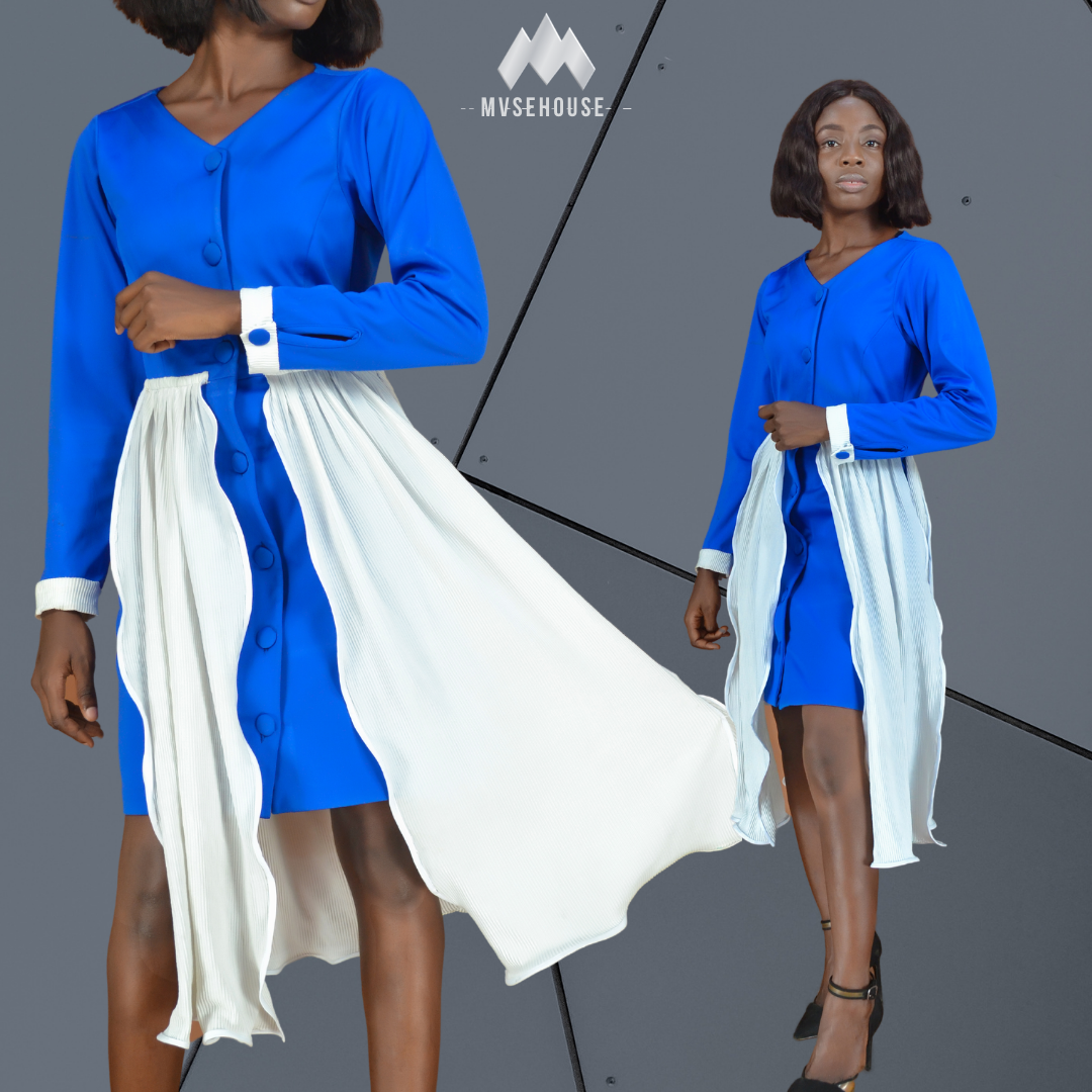 MvseHouse FANZA dress White and Blue (Office Clothes for Women)