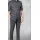 a men’s short-sleeve suit in a dark color, likely black or charcoal gray. Our suit features a short-sleeved jacket with a structured, tailored fit and a straight cut, paired with matching trousers. The jacket has a button-down front and four flap pockets with buttons—two on the chest and two at the waist—giving it a formal yet slightly Rwandan style. The overall look is polished, modern, and suitable for formal or semi-formal occasions in warm weather.