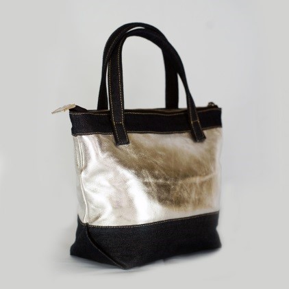 DINGO Esther Silver Sheep Skin & Denim Tote Bag