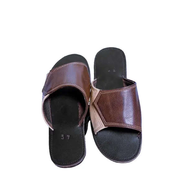 Handcrafted Brown Leather Unisex Slip-On Sandals – Classic One-Band Comfort Flats