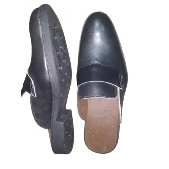 Sleek black leather open-back shoes with a smooth finish and cushioned insole. Ideal for easy wear while maintaining a smart, polished look