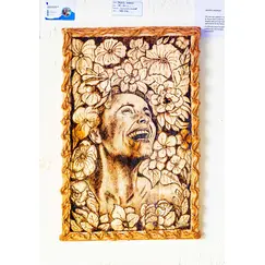 Joyful Woman Radiant Handcrafted Wooden Artwork. This exquisite piece captures the essence of joy and resilience, intricately carved into premium wood.