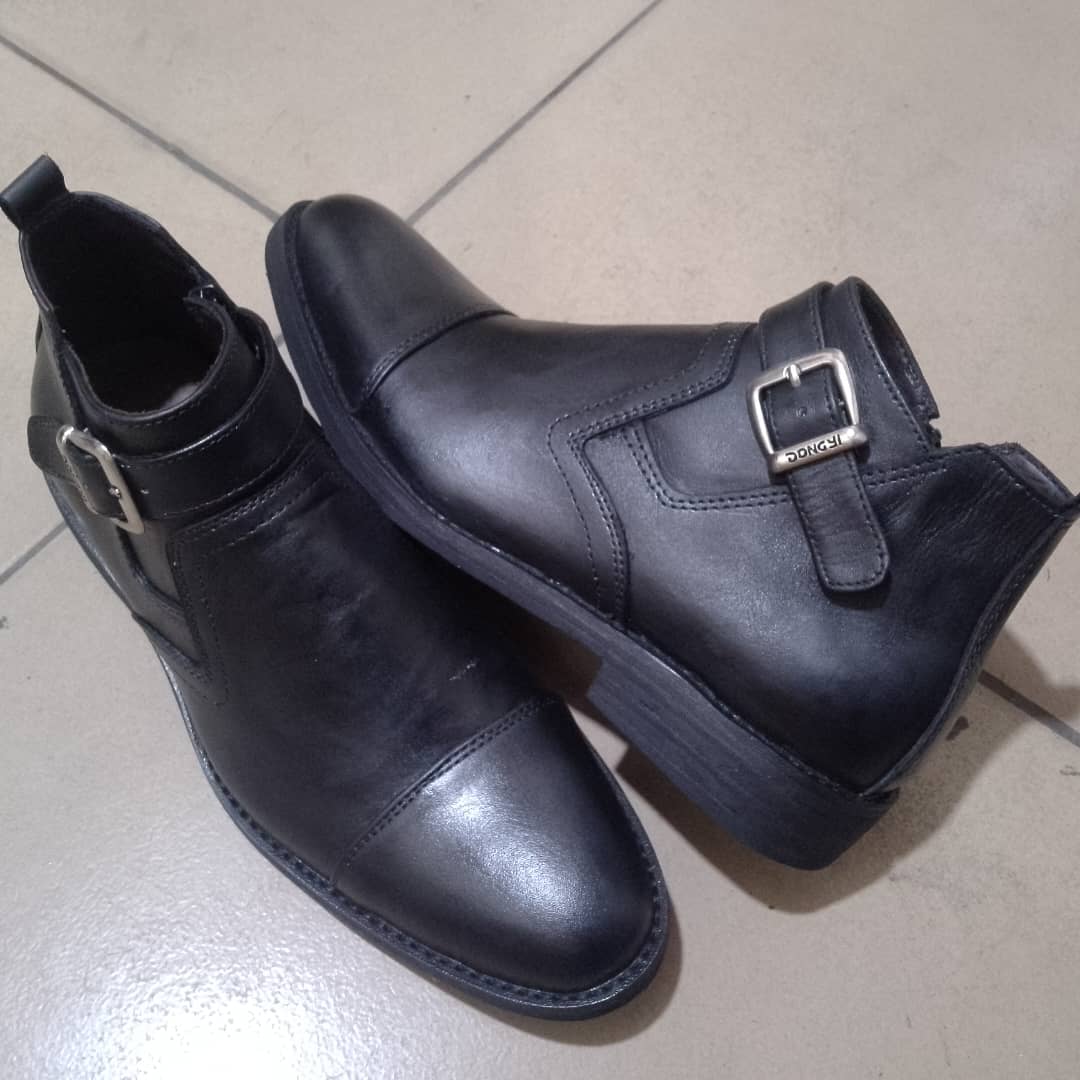 Premium Craftsmanship: Expertly crafted in Rwanda, these men’s black ankle boots offer a sleek and modern look with superior durability.Stylish Buckle & Zip Design: Featuring a classic plain-toe silhouette with an adjustable buckle strap and a convenient side zipper for easy wear.Ultimate Comfort: Designed for all-day wear, these boots provide a snug yet flexible fit, ensuring maximum comfort with every step.Versatile & Fashion-Forward: Perfect for casual outings, office wear, or formal occasions, adding an elegant touch to any outfit.Durable & High-Quality Materials: Made from premium leather with a sturdy sole, ensuring longevity and resistance to daily wear and tear.