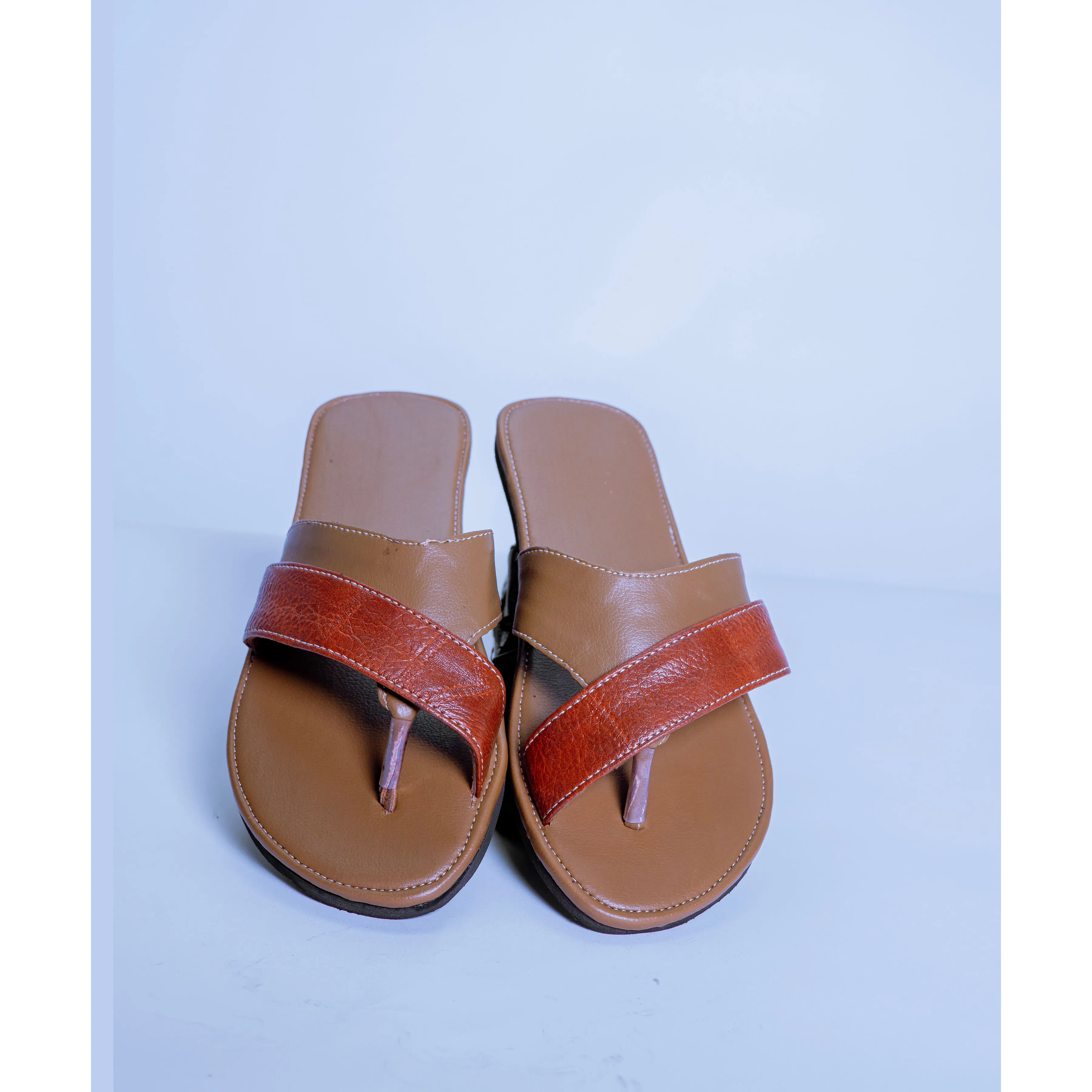 Men’s Brown-Red Leather Slide Sandals – Crisscross Strap Open-Toe Slip-On Sandals
