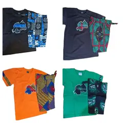 This vibrant Unisex Kitenge Print Tee & Shorts Set, crafted in Rwanda, is designed for stylish daily wear. The set features a comfortable t-shirt and matching shorts with an elastic waistband, making it ideal for casual outings or lounging at home. Available in custom sizes for babies, kids, and adults, this unique set combines traditional African print with modern comfort for the whole family. Made from durable, high-quality materials, it's perfect for those looking to add a cultural touch to their wardrobe.
