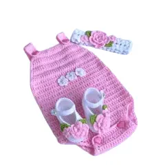 Minimum quantity for "Pink Knit Baby Sweater Romper with Matching Hat & Booties | Infant Outfit for Fall & Special Occasions" is 1.