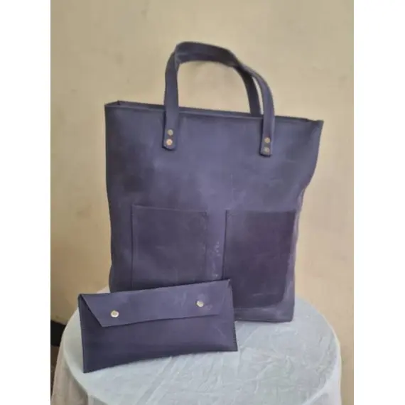 Minimum quantity for "TGA Ethiopian Dark Blue Leather Hobo Handbag & Wallet Set – 2PCS Women's Tote Purse" is 1.