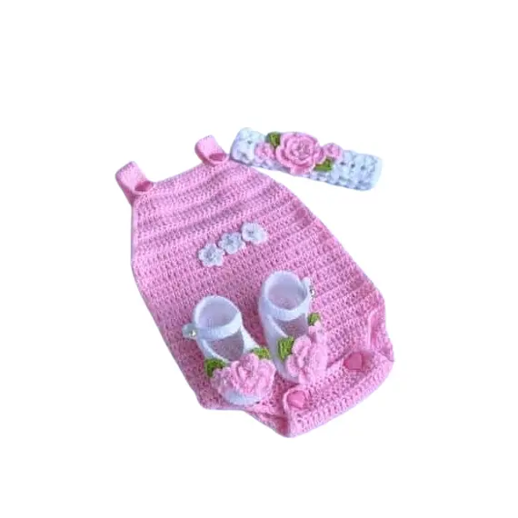 - Floral Knit Design: Each piece has a delicate, hand-knitted flower accent for a sweet, cohesive look.