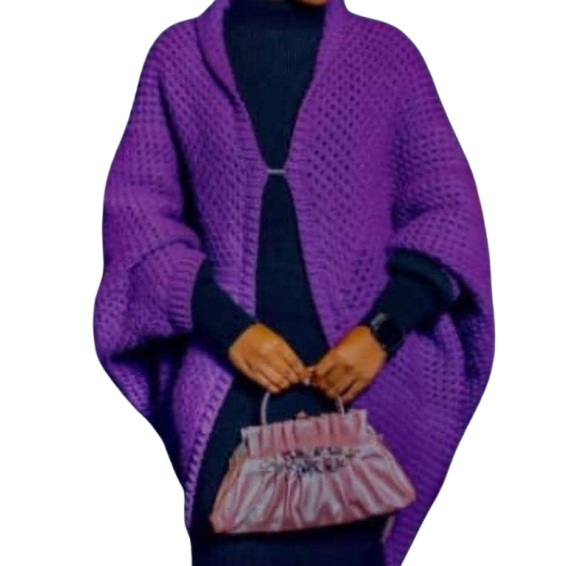 Wrap yourself in elegance and warmth with this beautifully hand-knitted purple cardigan. Featuring a loose, comfortable fit and chic open-front design, it blends fashion with coziness. Perfect for layering over dresses or casual outfits, making it a versatile piece for any occasion