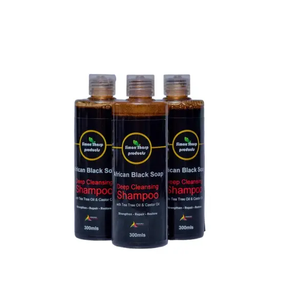 SIMON SHARP Deep Cleanse African Black Soap Shampoo with Tea Tree & Castor Oil – Strengthen & Restore – 300ml | Made in Uganda