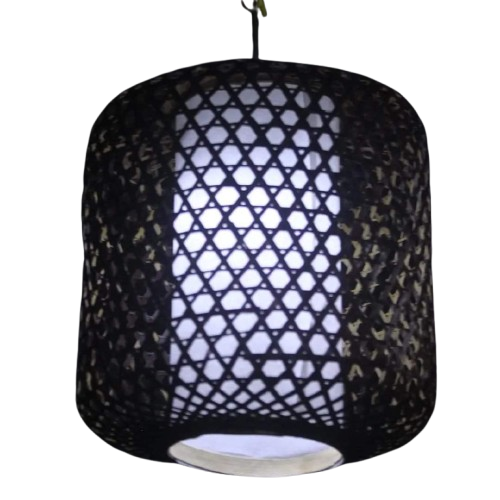 Black Wooden Bamboo Lamp – Dimmable Vintage Boho Woven Bamboo Ceiling Light Fixture