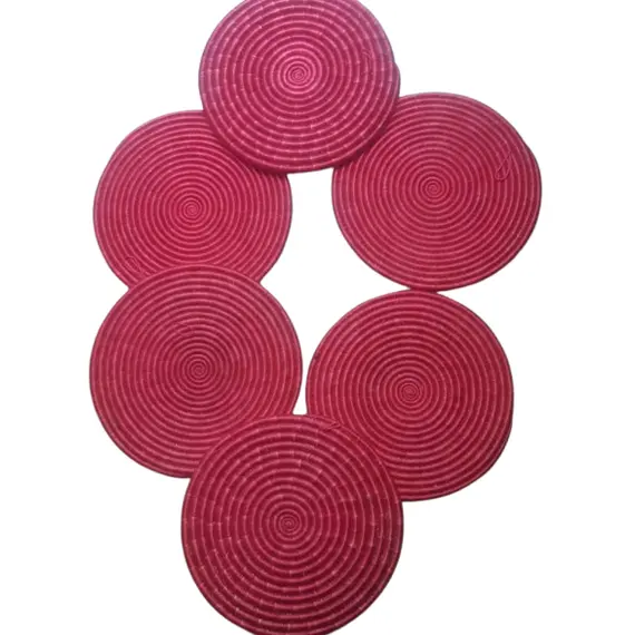 IWACU HANDWOVEN RED PLACEMATS – Set of 6 Elegant Rattan Table Mats