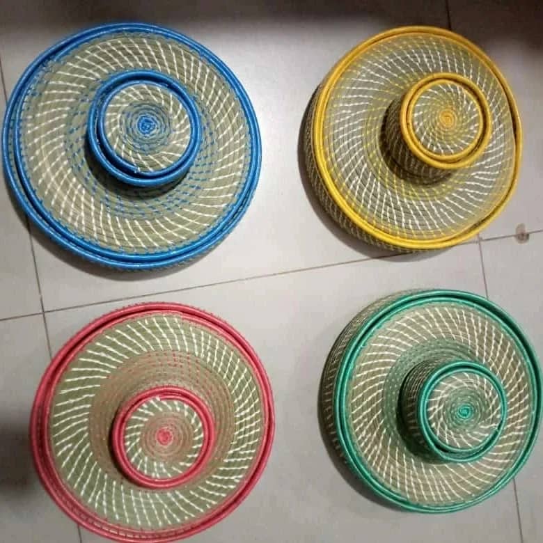 TableMart Colorful Rwandan Woven Basket Set – Handmade African Decor & Tableware (30cm, Set of 6)