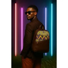 a leather bag made from original leather that include African art