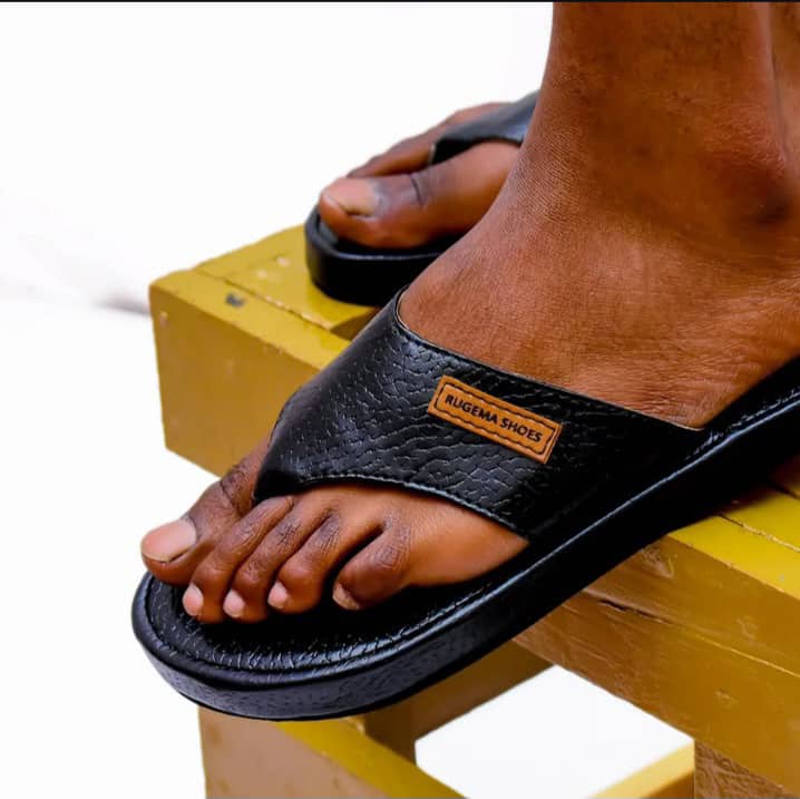 Upgrade your footwear with these classic black leather sandals from Rugema shoes. made with premium, textured leather and soft inner sole, these sandals are designed for both styles and durability  wheather you are heading to work, running errands, or relaxing at home, they offer excellent comfort, a snug fit, and longlasting quality .
