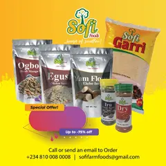 SOFI PREMIUM PACKAGE Egusi 250g, Garri 2kg, Ogbono 250g, Plantain Flour 1kg, Locust Beans 100g, Yam Flour 1kg, Dry Pepper 100g